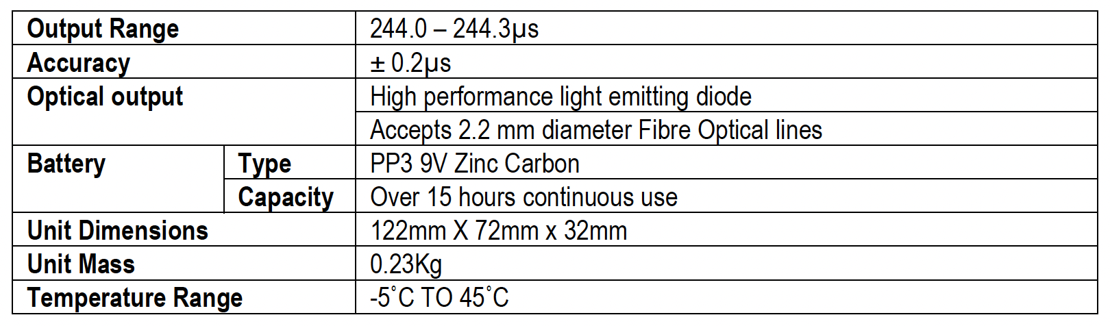 An accurate nominally 244.15μs pulse is generated on the START STOP outputs.